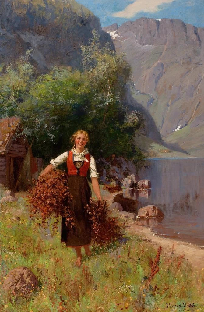 Painting Girl in a Fjord Landscape - Hans Dahl | Art print