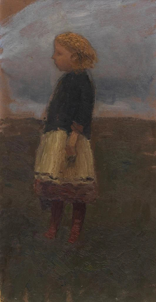 Dans cette œuvre captivante, Otto Modersohn nous transporte au cœur d'un paysage rural, où une jeune fille se tient sereinement dans la lande. La composition est dominée par des teintes douces et naturelles, évoquant la tranquillité d'un jour ensoleillé. Les nuances de vert et de jaune se mêlent harmonieusement, créant une atmosphère paisible et contemplative. La technique impressionniste de Modersohn se manifeste par des coups de pinceau fluides, donnant vie à la scène tout en préservant une certaine abstraction. Cette toile invite le spectateur à s'immerger dans la beauté simple de la nature et à apprécier le lien intime entre l'humanité et son environnement.