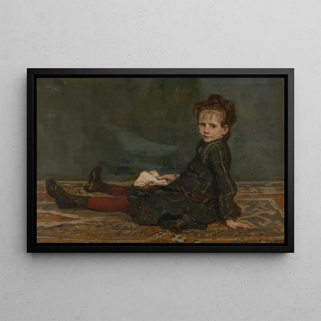 Girl Sitting on a Rug: A Scene of Tenderness and Intimacy In this art print of Girl Sitting on a Rug, Alfred Cluysenaar transports us into a universe of serenity. The composition highlights a young woman, seated on a richly decorated rug, surrounded by warm and soothing colors. The soft tones of the work, ranging from ochres to shades of blue, create an intimate and contemplative atmosphere. Cluysenaar's technique, characterized by delicate brushstrokes, brings life to the texture of the rug and the softness of the model's skin. This tranquil scene invites the viewer to immerse themselves in a moment of pause and reflection. Alfred Cluysenaar: a master of realism at the heart of the 19th century Alfred Cluysenaar, a Belgian painter active in the 19th century, is recognized for his realistic approach and his ability to capture moments of everyday life. Influenced by the realist movement, he dedicated himself to depicting intimate scenes, often centered on female figures. His career flourished in an artistic context where the importance of domestic life and human emotions was increasingly emphasized. Cluysenaar established himself through his unique style, blending precision and sensitivity, which allowed him to leave a lasting mark in art history. A decorative acquisition with multiple assets The art print of Girl Sitting on a Rug makes an ideal decorative piece for various living spaces. Whether in a living room, office, or bedroom, this artwork adds a touch of elegance and warmth. Its printing quality guarantees remarkable fidelity to the original work, allowing you to enjoy every detail. The aesthetic appeal of this canvas lies in its ability to evoke emotions and create a soothing atmosphere. By incorporating this art print into your interior, you give your space an artistic dimension and an invitation to contemplation.