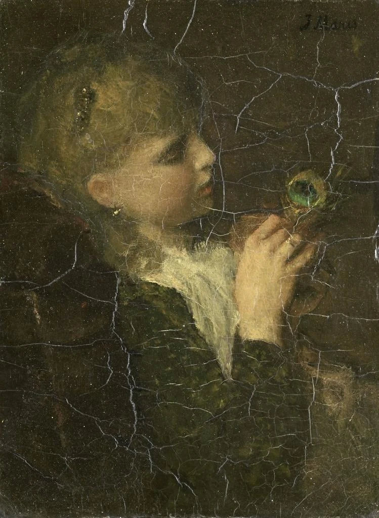 Painting Girl with a peacock feather - Jacob Maris | Art print