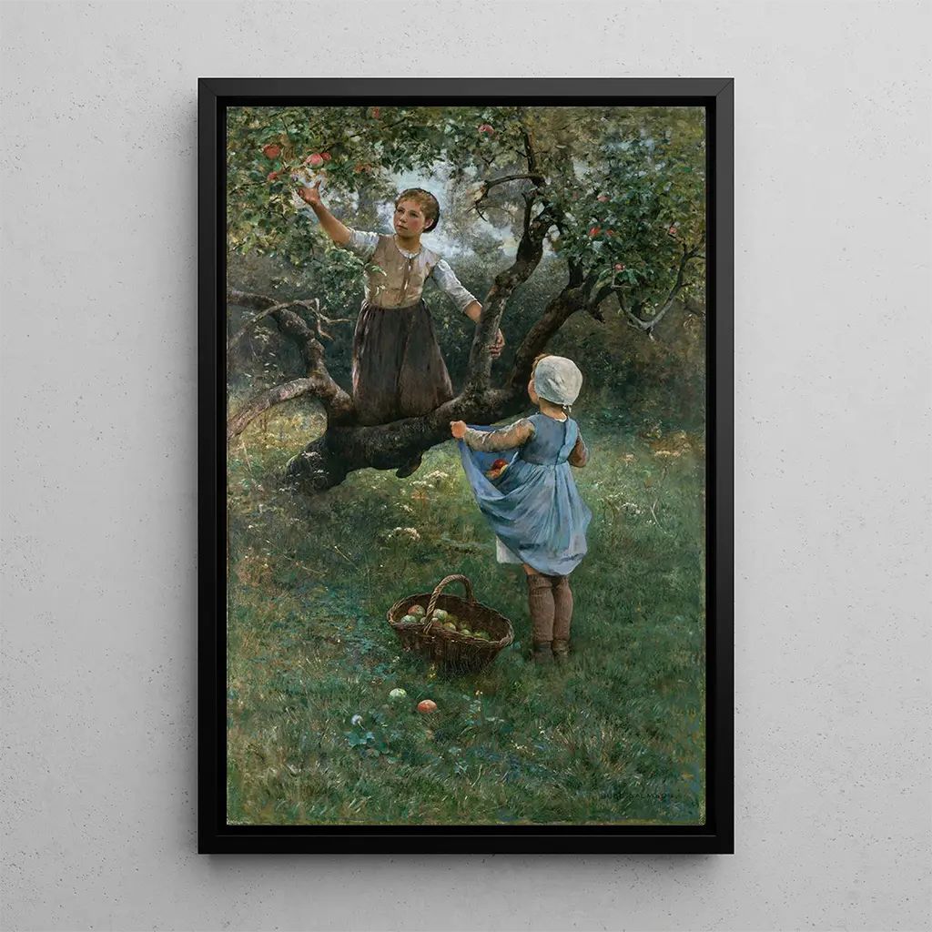 Painting Girls picking fruits - Hugo Salmson | Art print