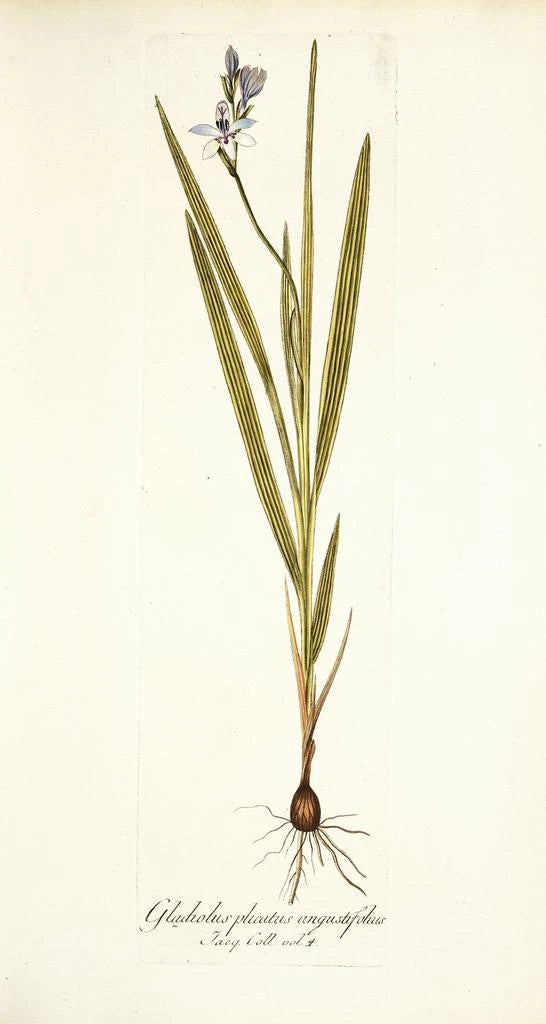 Nikolaus Joseph Freiherr von Jacquin, an emblematic figure of the 18th century, managed to combine his passion for botany with his artistic talent. His in-depth studies and travels enabled him to discover rare plant species, which he later immortalized in his works. Gladiolus plicatus angustifolius is a perfect example of his meticulous approach, where every detail is observed with care. As a botanist, Jacquin also contributed to advancing knowledge about plants, making him a pioneer in the field of scientific illustration.