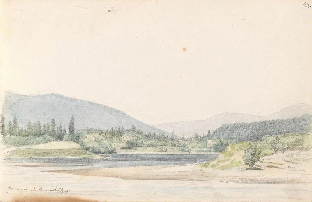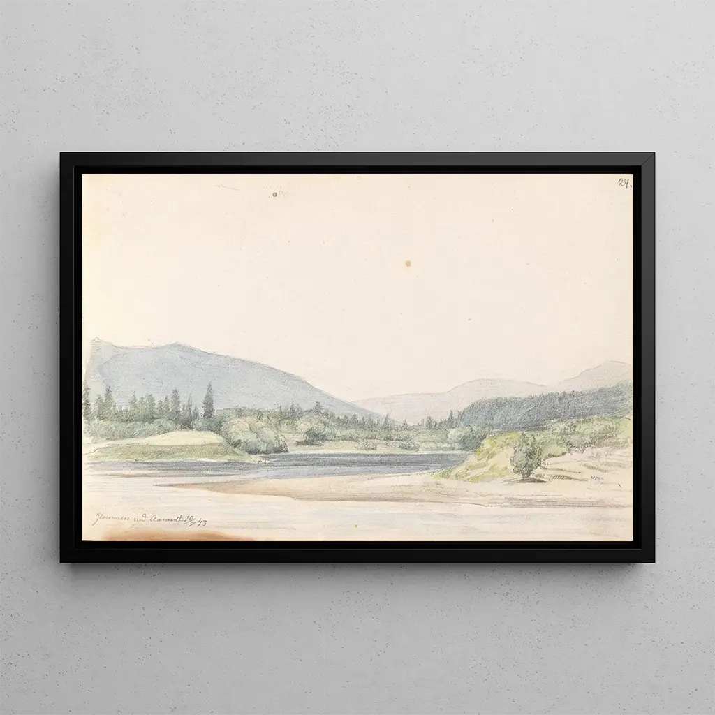 In "Glomma Southward," Adolph Tidemand transports us to the heart of a majestic Norwegian landscape. The canvas, bathed in light, reveals a winding river surrounded by towering mountains and dense forests. The vibrant colors, ranging from deep greens to soothing blues, create a serene and contemplative atmosphere. Tidemand, with his meticulous technique, manages to capture the raw beauty of nature, inviting the viewer to escape into this enchanting painting. Every brushstroke seems to breathe tranquility, making this artwork a true celebration of natural splendor.