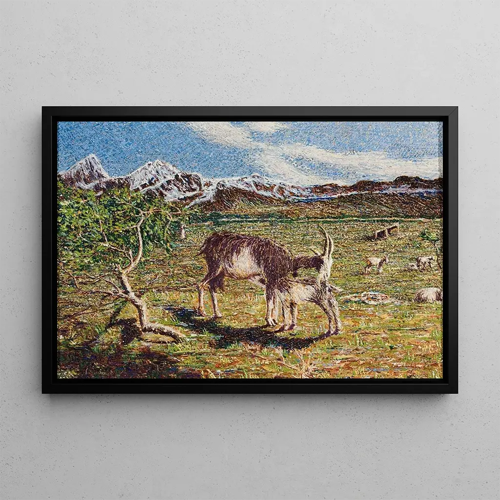 The art print of "Chèvres against landscape" is an ideal decorative piece to bring a touch of nature into your interior. Whether in a living room, office, or bedroom, this artwork evokes serenity and peace, creating a relaxing atmosphere. The quality of the art print guarantees remarkable fidelity to the colors and details of the original work, allowing full appreciation of Segantini's talent. With its aesthetic appeal, this canvas will appeal to art lovers and landscape enthusiasts alike, while enriching your interior decor.