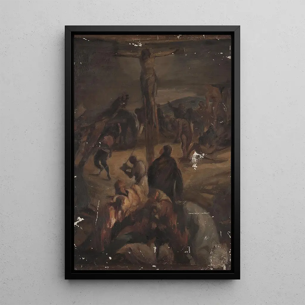 Golgotha : a striking depiction of suffering The art print of "Golgotha" by Jan Cybis is a powerful piece that evokes pain and redemption. The canvas portrays a dramatic scene, where human figures are immersed in an intense struggle, surrounded by a dark and tumultuous landscape. The dark colors, dominated by shades of black and red, emphasize the tragic atmosphere of the work. Cybis's technique, marked by expressive strokes and a dynamic composition, captures the very essence of human suffering. This artwork invites viewers to reflect on universal themes such as faith, pain, and hope. Jan Cybis: a witness of his time Jan Cybis, a Polish painter of the 20th century, established himself as a major figure in contemporary art. His artistic journey was influenced by the tumultuous events of his era, including war and social upheavals. Cybis explored various styles, but he is especially known for his ability to translate deep emotions through his works. "Golgotha" reflects this ongoing search for meaning and truth, while also mirroring the concerns of his time. Cybis's art is an invitation to explore the complexities of human existence. A decorative acquisition with multiple advantages The art print of "Golgotha" is a bold choice for those wishing to add a touch of intensity to their interior decor. Whether in a living room, office, or exhibition space, this canvas draws attention and provokes thought. Its reproduction quality ensures remarkable fidelity to the details and colors of the original artwork, allowing full appreciation of Cybis's artistic vision. By integrating this piece into your space, you create an environment that stimulates thought and emotion, while adding a unique artistic dimension to your decor.