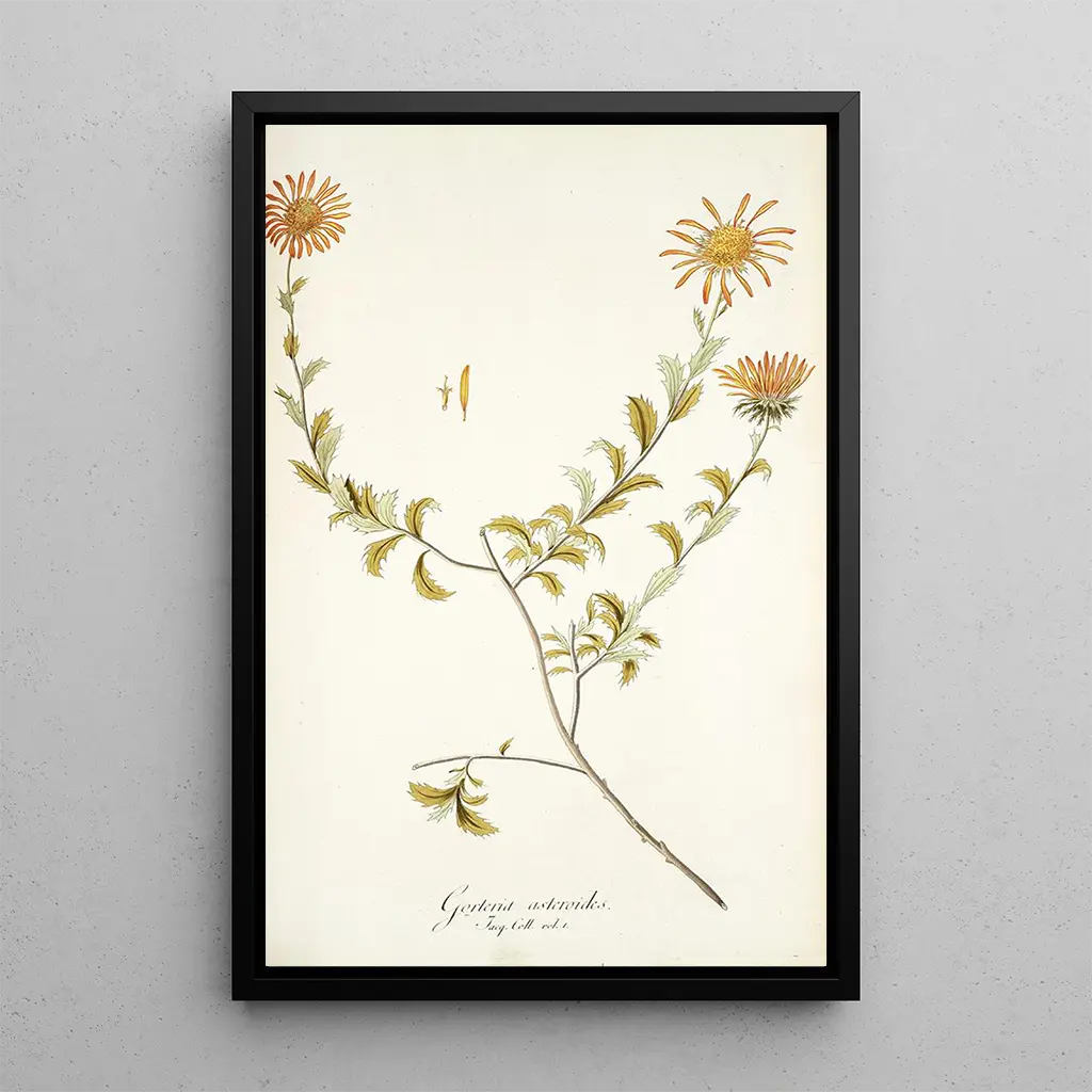 The art print of Gorteria asteroides is an ideal decorative piece to bring a touch of nature to your interior. Whether in a living room, office, or bedroom, this artwork will appeal through its quality and fidelity to the original work. The vivid colors and meticulous details will attract attention and spark conversations. By choosing this canvas, you opt for a decoration that combines culture and aesthetics, while paying tribute to the beauty of flora. This piece is not only a decorative addition but also a reminder of the importance of nature in our daily lives.