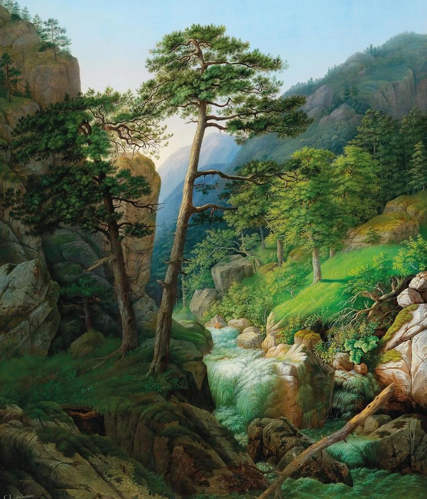 Grand paysage avec de l'eau qui coule - Karl Lintzbauer