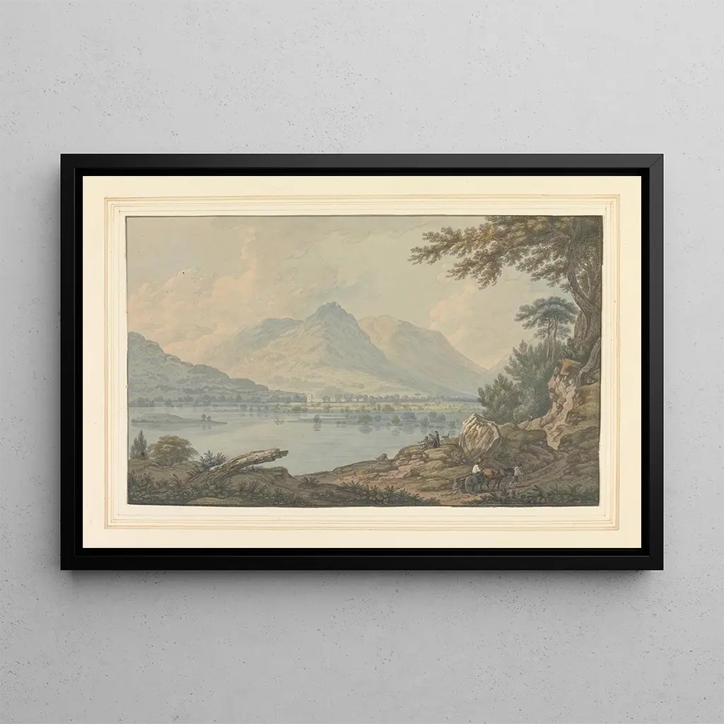 "Grasmere," a work by Joseph Farington, evokes the serene beauty of British scenery. This canvas depicts an idyllic panorama, where lush green hills are reflected in the calm waters of a lake. The shades of green and blue, combined with touches of golden light, create a peaceful and dreamy atmosphere. Farington's technique, blending precision and sensitivity, captures the magic of nature in all its splendor. Every detail, from the foliage to the reflections in the water, testifies to his talent for immortalizing fleeting moments of beauty.