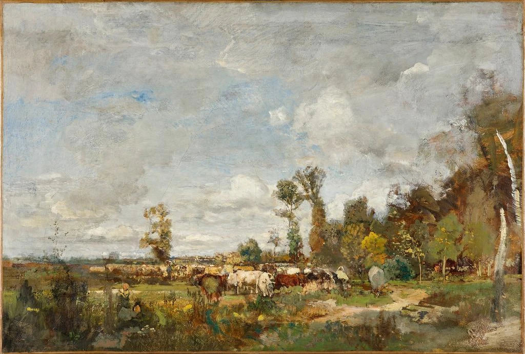 Bétail paissant en Hollande : an ode to rural life The art print of Bétail paissant en Hollande by Emil Jakob Schindler transports us to a pastoral landscape where nature and agriculture coexist harmoniously. This artwork features peacefully gathered cows, surrounded by lush fields and a bright sky. The vivid colors and meticulous details create a lively and joyful atmosphere. Schindler's technique, which employs dynamic brushstrokes, brings this bucolic scene to life, evoking the simplicity and beauty of countryside living. This art print is a true invitation to appreciate the tranquility of nature. Emil Jakob Schindler: a painter of realism Emil Jakob Schindler, active in the 19th century, was an Austrian artist whose work is often associated with the realist movement. Influenced by the beauty of Dutch landscapes, he captured rural life with a unique sensitivity. Schindler traveled across Europe, drawing inspiration from scenes of daily life and natural scenery. His style is characterized by a particular attention to detail and a palette of vibrant colors. Through his works, he helped to showcase the beauty of agricultural landscapes, leaving a lasting impact on the art of his time. A decorative acquisition with multiple advantages The art print of Bétail paissant en Hollande is an ideal choice to enhance your interior decor, whether in a living room, kitchen, or office. Its print quality and fidelity to the original work make it a captivating decorative element. This artwork adds a touch of freshness and nature to your space, while evoking the serenity of rural life. By incorporating this canvas into your interior, you create a warm and welcoming atmosphere, while celebrating the art of Emil Jakob Schindler.