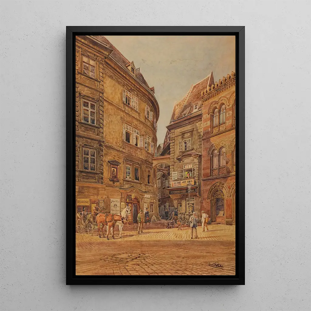 The reproduction of "Griechenbeisl and Greek church" is a decorative piece that will enhance any interior. Whether in a living room, an office, or a waiting area, this art print adds a touch of elegance and culture. The quality of the reproduction ensures exceptional fidelity to the details of the original work, allowing full appreciation of the beauty of each element. With its aesthetic appeal and rich history, this piece becomes a focal point that inspires admiration and interest, transforming your space into a place of artistic contemplation.