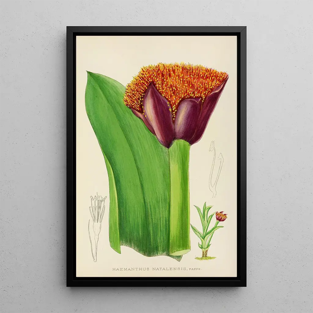 The art print of the Haemanthus natalensis is an ideal decorative piece to enhance your interior, whether in a living room, office, or bedroom. Its vibrant color palette adds a touch of freshness and vitality to any space. The quality of the reproduction guarantees fidelity to the original artwork, allowing you to enjoy the aesthetic of Pole-Evans without compromising your decor style. By choosing this canvas, you opt for an artistic element that not only beautifies your environment but also sparks conversations about art and nature.