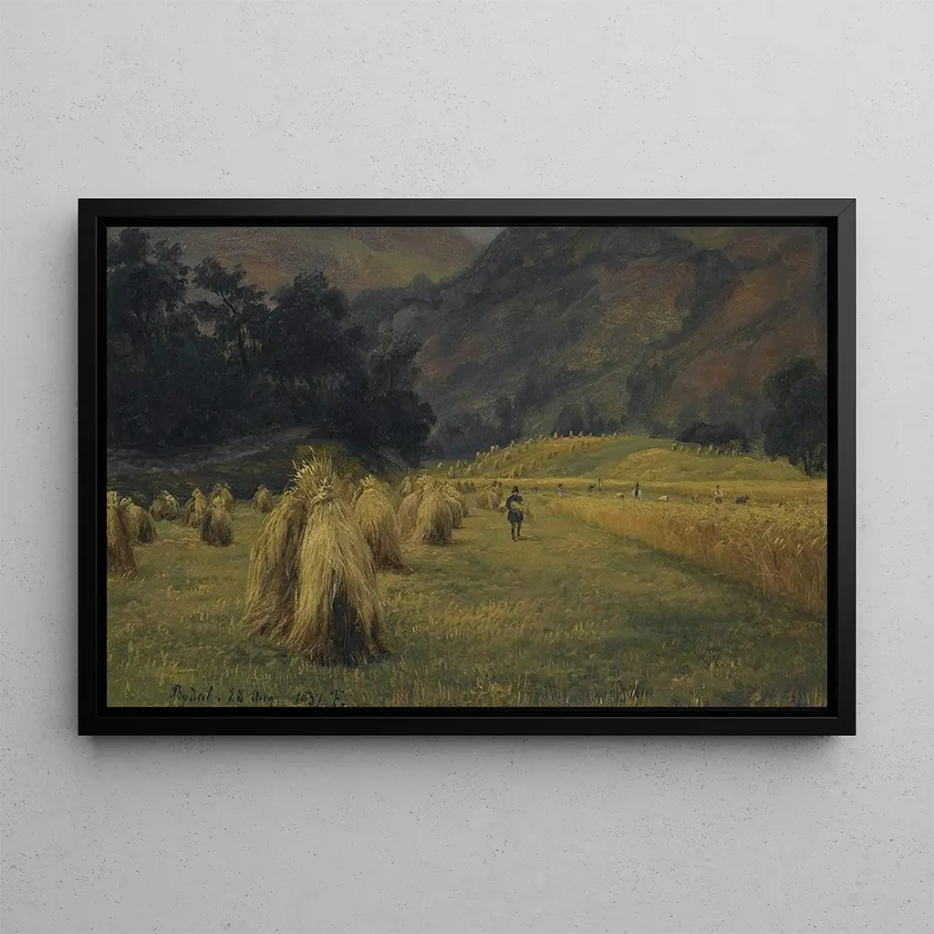 Rydal Cumbria Hay Bales: a vibrant painting of rural life In this art print of Rydal Cumbria Hay Bales, Thomas Fearnley captures the very essence of the English countryside. The bales, standing like sentinels in the middle of a lush landscape, are bathed in a gentle light that evokes the tranquility of a summer afternoon. The warm, earthy colors blend harmoniously, while the sky, dotted with light clouds, adds a poetic dimension to this bucolic scene. Fearnley's technique, which combines precision and impressionism, creates an atmosphere of serenity, inviting the viewer to immerse themselves in this lively painting. Thomas Fearnley: the master of romantic landscape painting Thomas Fearnley, a Norwegian painter of the 19th century, is renowned for his romantic landscapes that celebrate the natural beauty of his homeland and beyond. Influenced by the Romantic movement, he was able to capture the nuances of light and atmosphere, paying homage to nature in all its splendor. Fearnley traveled across Europe, drawing inspiration from English and Italian landscapes, which enriched his style. His contribution to landscape art is undeniable, and his works continue to inspire contemporary artists. Rydal Cumbria Hay Bales is a perfect example of his talent, blending realism and poetry. A decorative acquisition with multiple assets Choosing an art print of Rydal Cumbria Hay Bales means selecting a canvas that will add a touch of rustic charm to your interior. Whether in a living room, office, or bedroom, this piece evokes peace and the simplicity of country life. The quality of the reproduction guarantees fidelity to the colors and details of the original, while offering undeniable aesthetic appeal. This painting will appeal to art lovers and nature enthusiasts alike, making it an essential decorative element for any home.