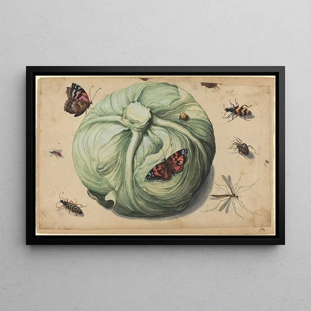 The art print of the 'Head of Cabbage with Insects' is a bold choice for those wishing to add a touch of originality to their interior decor. Whether in a kitchen, living room, or office, this canvas draws attention and sparks curiosity. Its printing quality guarantees fidelity to the details, paying homage to the original work. By incorporating this piece into your space, you bring an artistic and lively dimension, while celebrating the intriguing beauty of nature. This painting is a true asset to enrich your decor with a note of authenticity and charm.
