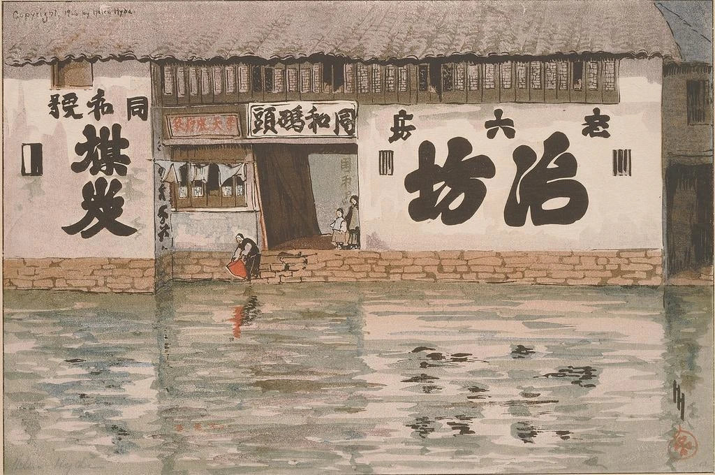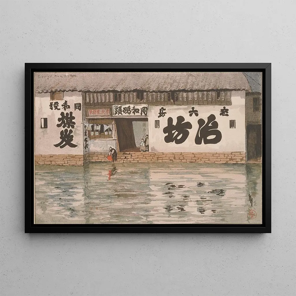 Helen Hyde, an American artist active in the late 19th and early 20th centuries, is renowned for her works inspired by Japanese culture and daily life. Influenced by the Arts and Crafts movement, she skillfully integrated Japanese design elements into her creations, enriching the artistic landscape of her time. Her paintings, often imbued with softness and femininity, reflect a unique sensitivity to the beauty of simple moments. The Kitchenware Shop is a perfect example of her talent for transforming ordinary scenes into true works of art.