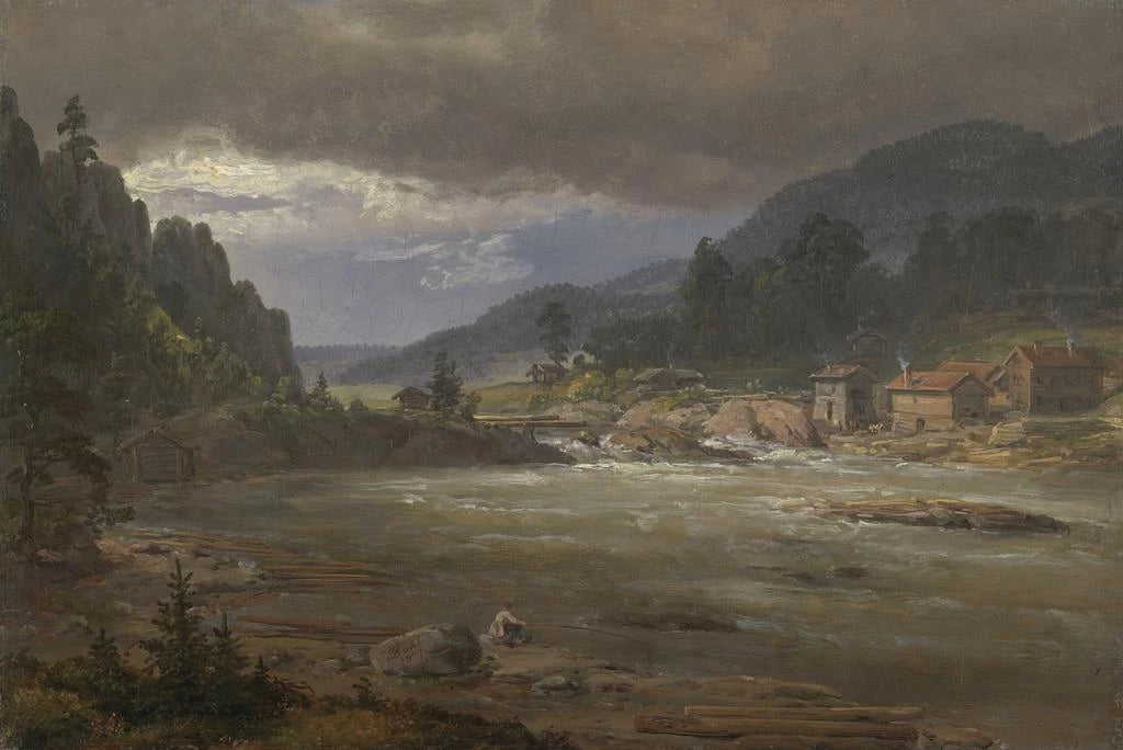 Johan Christian Dahl is considered one of the first landscape painters in Norway, playing a crucial role in the emergence of Scandinavian romanticism in the 19th century. Trained in Dresden, he draws inspiration from the great German masters while developing a unique style that celebrates Norwegian landscapes. Dahl captured the essence of wild nature, influencing many contemporary and future artists. "Hellefossen near Hokksund" is a perfect example of his skill in translating the majesty of Norwegian scenery, while incorporating elements of European romantic culture.
