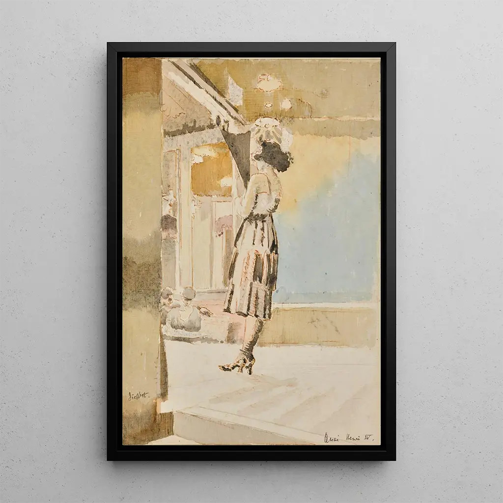 Walter Richard Sickert, a British artist active at the end of the 19th and beginning of the 20th century, was a key figure in the impressionist movement. Influenced by masters like Degas and Manet, he developed a unique style, blending realism and impressionist atmosphere. His works, often focused on scenes of everyday life, demonstrate a deep understanding of urbanity and human psychology. Sickert also played a role in the evolution of British art, introducing innovative techniques and striving to capture the very essence of his subjects.