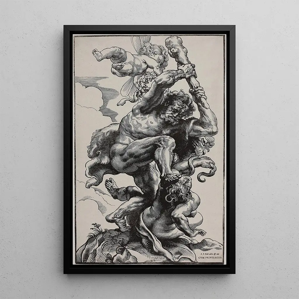 In "Hercules slaying envy," artist Christoffel Jegher depicts a dynamic scene where Hercules' strength and determination confront envy, personified as a dark and tormented figure. The composition is marked by striking contrasts between the vivid colors surrounding the hero and the darker shades enveloping envy. The engraving technique used by Jegher gives the artwork depth and texture that captivate the eye, inviting the viewer to immerse themselves in this symbolic struggle. The atmosphere is both dramatic and emotional, evoking universal themes of inner conflict and triumph over destructive passions. Christoffel Jegher: a master of Baroque engraving Christoffel Jegher, active in the 17th century, is renowned for his engravings that combine technical skill with narrative depth. Influenced by Baroque painters, he captured the essence of human emotions through his works. Jegher often collaborated with renowned painters, which enriched his style and artistic vision. His work, though less known than that of his contemporaries, played a vital role in the evolution of engraving, bringing a new dimension to the depiction of myths and classical stories. "Hercules slaying envy" perfectly illustrates this ability to merge mythological storytelling with refined technique. A decorative piece with multiple virtues The art print of "Hercules slaying envy" makes an ideal decorative piece to enhance your interior, whether in a living room, office, or bedroom. Its print quality and fidelity to the original work allow you to feel the full power of the scene. This artwork draws the eye and sparks conversations, while adding a touch of elegance and culture to your space. By choosing this canvas, you opt for a piece that not only beautifies your decor but also evokes deep reflections on human nature and its struggles.