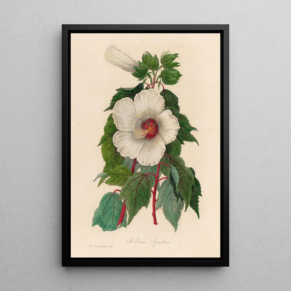 The art print Hibiscus aquaticus is perfect for adding a touch of freshness to your interior decor. Whether in a living room, office, or bedroom, this canvas will captivate attention and inspire admiration. Its printing quality ensures remarkable fidelity to the details of the original work, while offering a soothing aesthetic. By choosing this piece, you opt for a decoration that evokes serenity and the beauty of aquatic environments, while enriching your living space with a unique artistic touch.