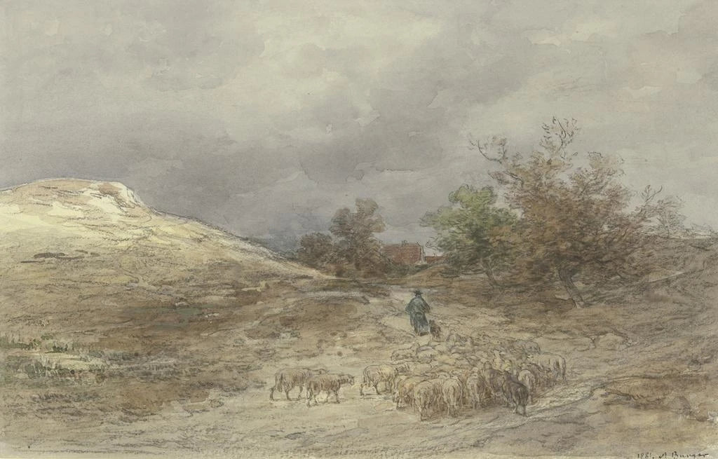 Hollow path with flock of sheep near Kelsterbach - Anton Burger