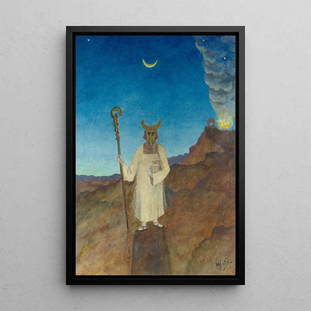 Moses with Horns: a bold and symbolic art print Moses with Horns, an iconic art print by Hjalmar Söderberg, offers a daring and symbolic vision of the biblical figure. In this reproduction, the artist uses rich colors and striking contrasts to emphasize the power and complexity of Moses. The horns, often interpreted as a symbol of wisdom and strength, add a mystical dimension to the depiction. Söderberg's technique, blending realism and stylized elements, creates an atmosphere that is both dramatic and contemplative, inviting the viewer to reflect on the duality of human and divine nature. Hjalmar Söderberg: a master of symbolism Hjalmar Söderberg, born in 1869, is a Swedish artist whose work is part of the early 20th-century symbolist movement. Influenced by literature and philosophy, he explores profound themes such as spirituality, solitude, and the search for meaning. His unique approach to painting, which combines realistic elements with powerful symbols, has allowed him to stand out in the artistic landscape of his time. Moses with Horns is a perfect example of his talent for capturing the essence of historical figures while reinterpreting them through a modern and introspective lens. A decorative art print with multiple virtues The reproduction of Moses with Horns is a piece that will enhance your interior decoration, whether in an office, a living room, or a library. Its strong visual impact and vibrant colors immediately attract the eye, making this canvas a focal point in any space. The quality of the print ensures remarkable fidelity to the original artwork, allowing you to enjoy every detail. By incorporating this art print into your decor, you choose not only an artistic piece but also a source of inspiration and reflection on universal themes.