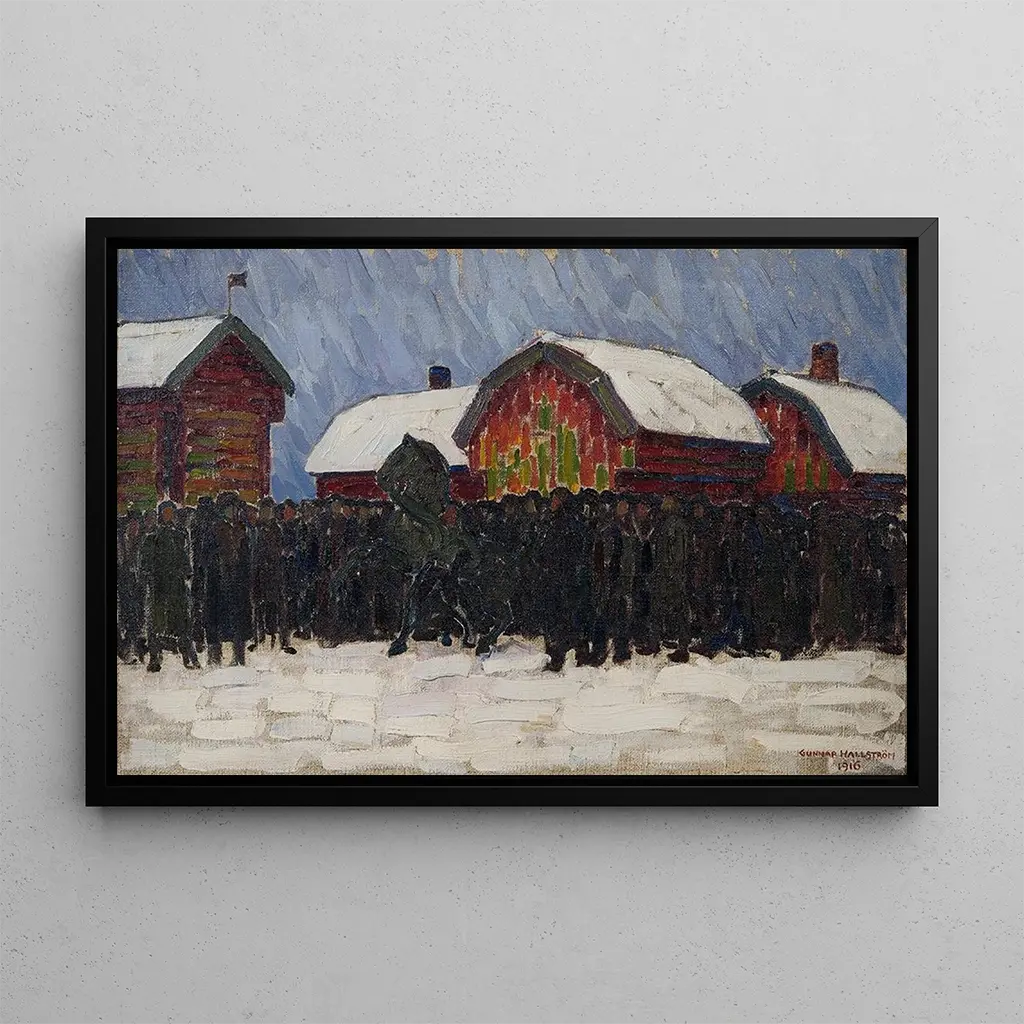 The art print of "Sale of Horses" by Gunnar Hallström depicts a vibrant and lively scene, where the energy of the horses and buyers blends in a rural setting. The bright colors and meticulous details of the animals capture the very essence of the transaction, making the excitement of the moment palpable. Hallström, with his mastery of light and shadow, succeeds in creating a lively atmosphere, where each character seems to come to life. The piece invites contemplation not only of the beauty of the horses but also of the importance of breeding and commerce in the society of its time.