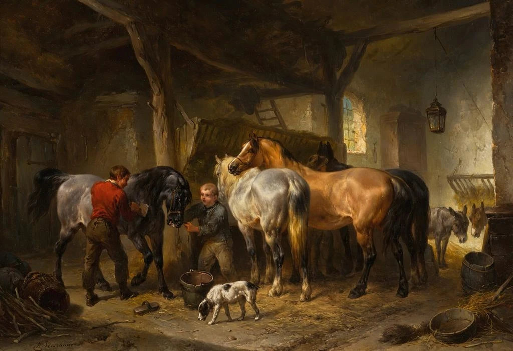 Horses in a Stable: a masterful example of animal realism Horses in a Stable is an artist whose work is rooted in the tradition of animal realism, a style that gained popularity in the 19th century. Influenced by the great masters of animal painting, he has developed a unique approach, combining precision and sensitivity. His career, marked by a passion for horses, has allowed him to establish a reputation in the art world. By depicting these noble creatures in their natural habitat, he not only celebrates their beauty but also highlights the importance of the relationship between humans and animals. This artwork demonstrates his talent and commitment to faithful representation of equestrian life. A decorative acquisition with multiple advantages The art print of "Horses in a Stable" makes an ideal decorative addition to various spaces such as the living room, office, or even a bedroom. Its print quality and fidelity to the details of the original work make it an attractive choice for art lovers and equestrian enthusiasts. With its warm ambiance and soothing aesthetic, this piece will bring a touch of elegance and serenity to your interior. By choosing this artwork, you opt for a decoration that evokes the beauty of nature and the bond between humans and animals.