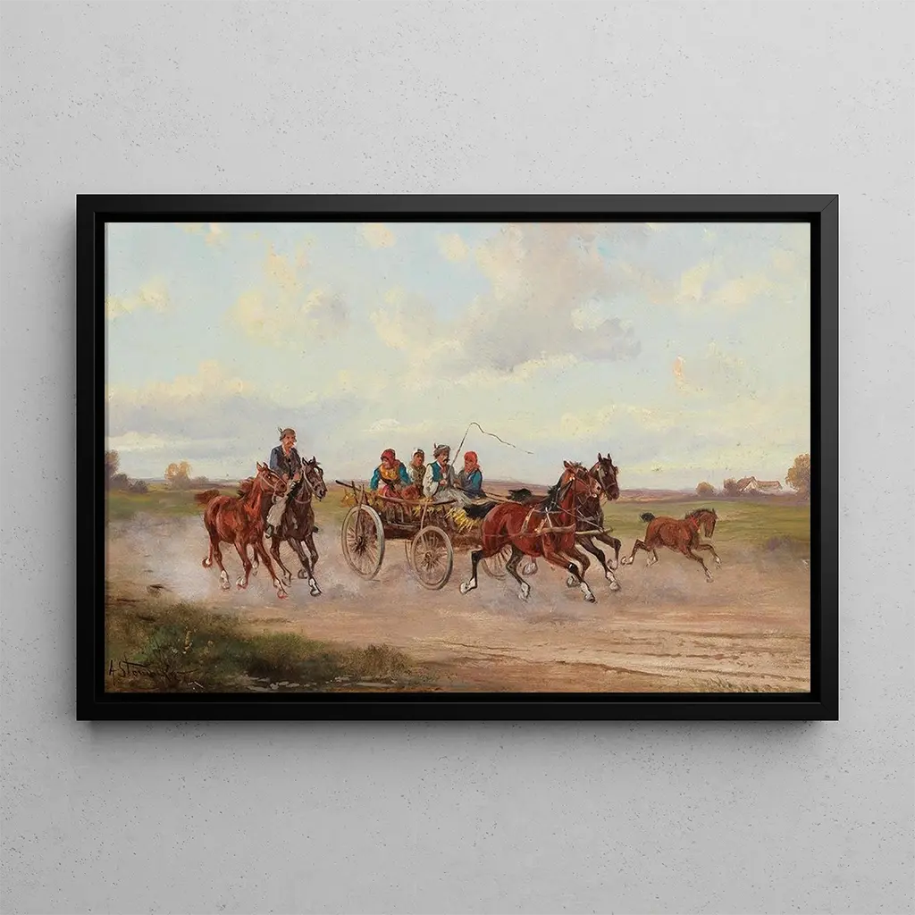 The art print of the "Hungarian Market Cart" is an ideal choice to enhance your interior, whether in a living room, office, or bedroom. Its printing quality guarantees fidelity to the colors and details of the original painting, adding an authentic touch to your decor. With its undeniable aesthetic appeal, this canvas draws the eye and sparks curiosity, while evoking a warm and welcoming atmosphere. Treat yourself to this piece to enrich your living space with a touch of history and culture.