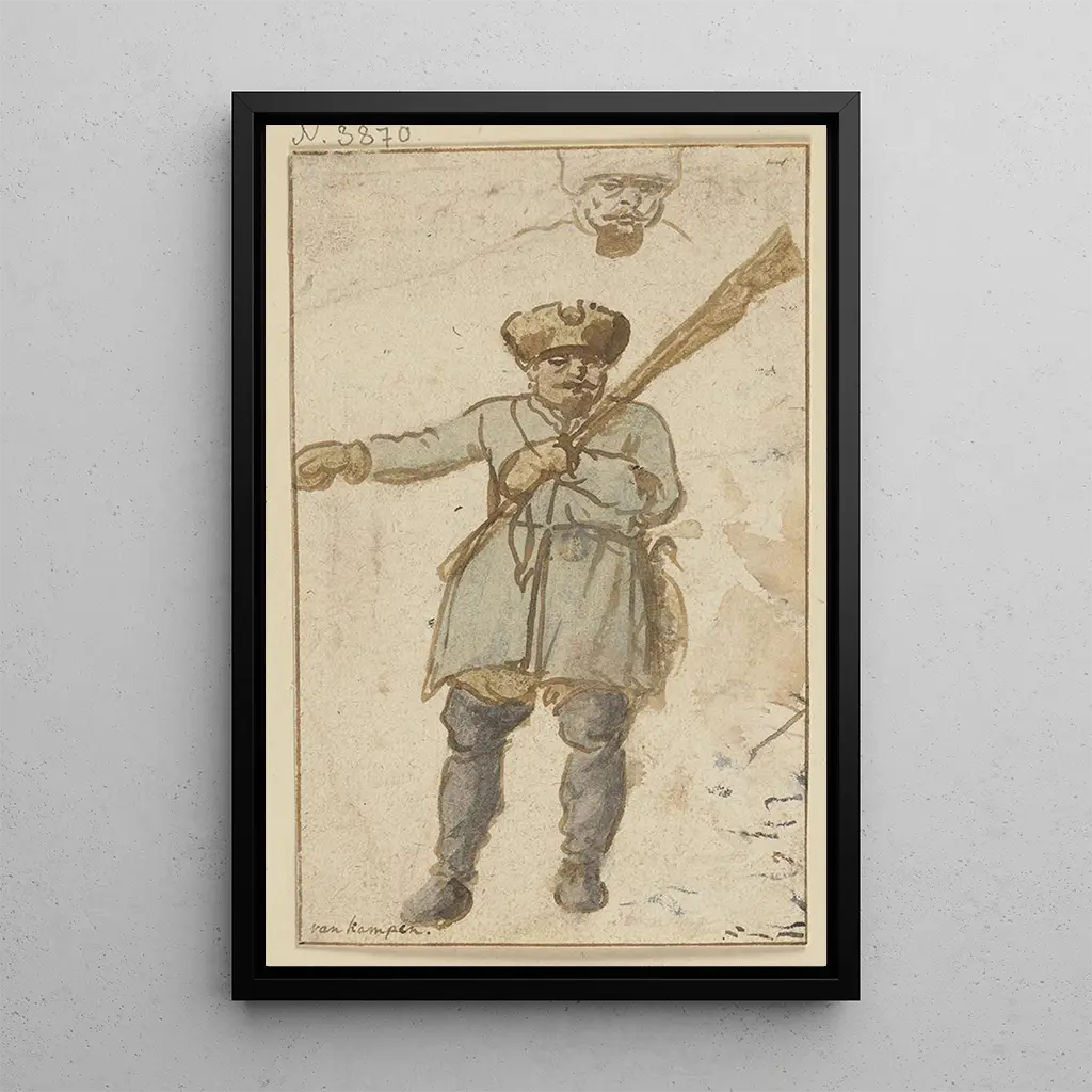 Art print of a hunter with a rifle and fur hat - Hendrick Avercamp | Art print