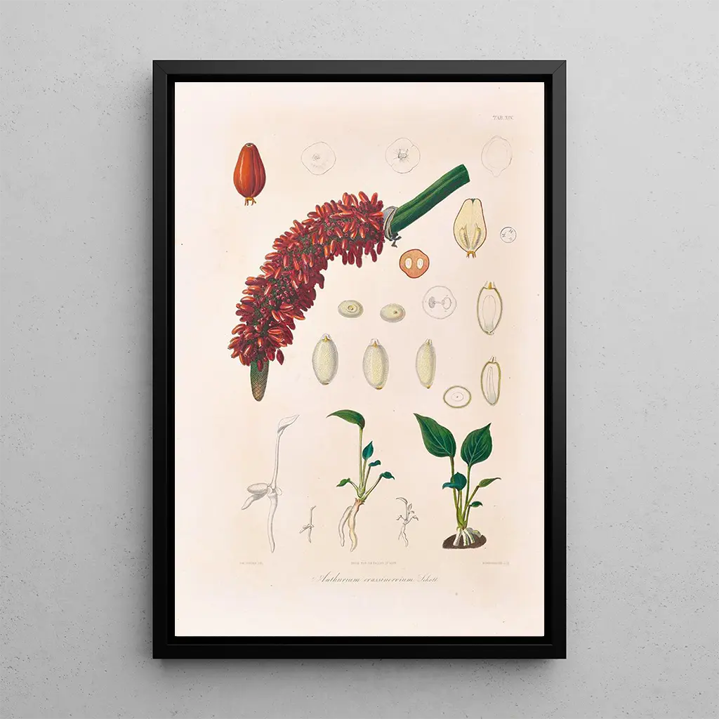 Icones Aroidearum Pl14: a fascinating botanical exploration The art print of Icones Aroidearum Pl14 immerses us in a world of delicacy and precision. Every detail of this piece is carefully rendered, highlighting the beauty of aroid plants. The vibrant colors, ranging from deep greens to shades of cream, create an atmosphere that is both soothing and captivating. The engraving technique used by the artist gives each plant an almost tangible texture, inviting the viewer to come closer and admire the meticulousness of the depiction. This work is much more than a simple botanical illustration; it is an ode to nature. Heinrich Wilhelm Schott: a pioneer of artistic botany Heinrich Wilhelm Schott, a 19th-century botanist and illustrator, played a crucial role in documenting plant species. His work is marked by a passion for aroids, a fascinating group of plants that captivated botanists of his time. Schott was influenced by scientific discoveries of his era and managed to combine scientific rigor with artistic sensitivity. His illustrations, including Icones Aroidearum Pl14, have become references in the field of botany, demonstrating the importance of visual representation in the study of plants. A decorative acquisition with multiple advantages Choosing the art print of Icones Aroidearum Pl14 means selecting a decorative piece that will enhance your interior. Whether in a living room, office, or bedroom, this canvas adds a touch of elegance and sophistication. Its printing quality guarantees color fidelity and detail, paying tribute to Schott's original work. The aesthetic appeal of this reproduction makes it an ideal choice for botanical and art enthusiasts, while seamlessly fitting into various interior decorating styles.