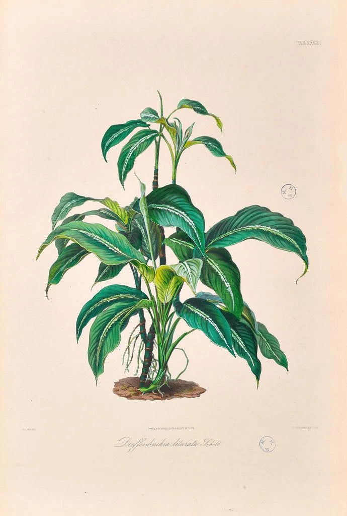 Heinrich Wilhelm Schott, an emblematic figure of botanical illustration in the 19th century, played a crucial role in documenting exotic plant species. His works, including Icones Aroidearum Pl28, testify to his commitment to science and art. Influenced by botanical explorations of his time, Schott mastered the blend of scientific precision and aesthetic appeal, offering illustrations that have become references for botanists. His work not only enriched knowledge of the Araceae but also inspired many artists and scientists around the world.