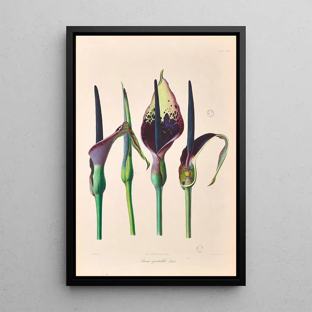 Icones Aroidearum Pl32 : a tribute to botanical richness "Icones Aroidearum Pl32" by Heinrich Wilhelm Schott is a captivating art print that highlights the diversity of aroids through a richly detailed illustration. Every element of this reproduction is carefully rendered, from the textures of the leaves to the delicate nuances of the flowers. The vibrant colors, ranging from deep greens to bright hues, create a lively and dynamic atmosphere. This artwork invites exploration into a fascinating botanical world, where each plant tells a unique story, revealing the beauty of nature in a new light. Heinrich Wilhelm Schott : the 19th-century botanical artist Heinrich Wilhelm Schott, born in 1794, is an iconic figure in botanical illustration, recognized for his in-depth studies of aroids. His work is part of the romantic movement of the 19th century, where art and science converge to celebrate nature. Influenced by the botanical explorations of his time, Schott was able to combine scientific rigor with artistic sensitivity, producing works that are both references for botanists and standalone art pieces. His legacy endures, inspiring new generations of artists and scientists. A decorative acquisition with multiple assets The art print "Icones Aroidearum Pl32" is a decorative piece that will add a touch of freshness and elegance to your interior. Whether in a living room, office, or bedroom, this artwork stands out for its print quality and aesthetic appeal. The meticulous details and vibrant colors make this piece a true focal point, garnering admiration from your guests. By choosing this reproduction, you incorporate a part of botanical richness into your decor, while paying homage to the art of Heinrich Wilhelm Schott.