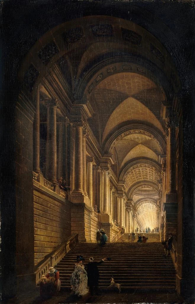 Pierre-Antoine Demachy, active in the 18th century, is renowned for his depictions of urban landscapes and idealized architectures. Influenced by the baroque style and classicism, he captured the essence of buildings of his time while adding a touch of imagination. His career, marked by a particular focus on details and mastery of perspective, made him a sought-after artist at Parisian salons. Demachy's works, often imbued with nostalgia, reflect an era when architecture was synonymous with grandeur and beauty. "Staircase of an imaginary palace" perfectly fits this tradition, offering a glimpse of his unparalleled talent.
