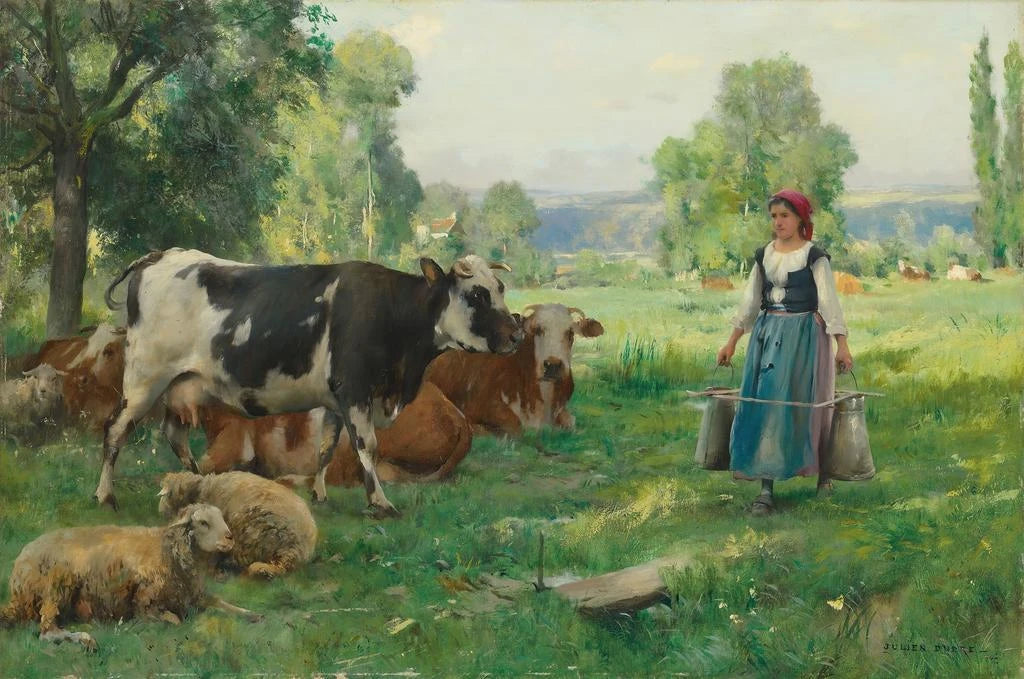 Julien Dupré, active in the late 19th century, is renowned for his depictions of French rural life. Influenced by Impressionism, he captured the beauty of landscapes and the simplicity of peasant life. His career, marked by a keen attention to detail and light, allowed him to establish a place among the artists of his time. Dupré often chose to paint scenes of the countryside, highlighting the harmonious relationship between man and nature, which earned him lasting recognition in the art world.