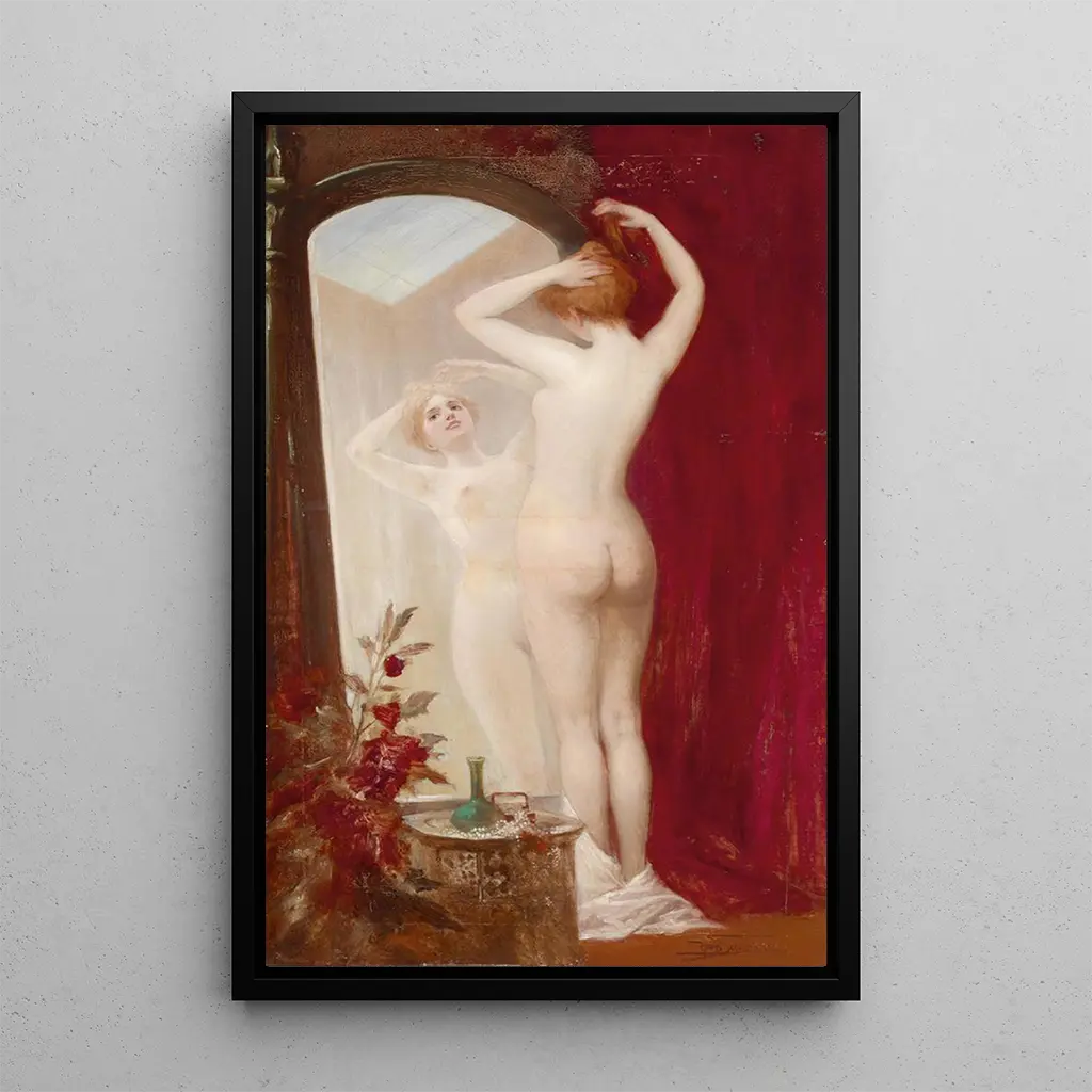 The art print of Devant le miroir is a decorative piece that will enhance any space, whether a living room, office, or bedroom. Its printing quality guarantees fidelity to the colors and details of the original artwork, allowing you to enjoy its aesthetic appeal daily. By integrating this art print into your interior decoration, you bring a touch of elegance and reflection, while sparking conversations about art and beauty. This canvas is much more than simple decoration; it is an invitation to contemplation and introspection.