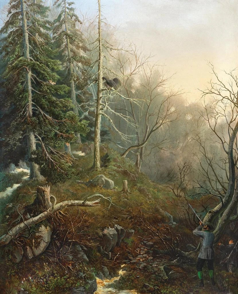 Anton Karinger's style is distinguished by its realistic approach, combined with an impressionist sensitivity that gives his works rare emotional depth. In "Dans le Kankerthall en Carniole," each brushstroke seems to vibrate with a life of its own, while the colors, carefully chosen, evoke soft light and delicate shadows dancing across the landscape. The composition is carefully orchestrated, blending elements of nature with perspectives that invite contemplation. Karinger excels in depicting textures, whether it is the lush foliage of trees or the richly detailed ground. This attention to detail, paired with a harmonious color palette, creates an immersive atmosphere that transports the viewer into the very heart of Carniola.