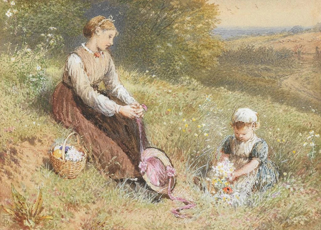 In the Meadow: A Bucolic Scene Filled with Gentle Charm The art print "In the Meadow" depicts a countryside scene where nature flourishes in all its splendor. The pastel colors, blending shades of tender green and bright yellow, create a soft and soothing atmosphere. The characters, portrayed with remarkable delicacy, seem to interact harmoniously with their environment, evoking a simple and joyful life. Myles Birket Foster's technique, often using watercolor, captures the light subtly, adding a lively dimension to this piece. This art print invites a contemplative pause, rediscovering the simple pleasures of life. Myles Birket Foster: the master of light and nature Myles Birket Foster, active in the 19th century, is known for his landscapes and scenes of rural life. Influenced by the Pre-Raphaelite movement, he strives to depict the beauty of nature with particular attention to detail. His career, marked by a constant exploration of light effects, allows him to create works imbued with poetry. "In the Meadow" is a perfect example of his style, where every element, from flowers to characters, is treated with care. Foster captured the very essence of rural life, making his works valuable testimonies of a bygone era. A decorative piece with multiple assets The art print of "In the Meadow" is a decorative piece that harmoniously fits into any type of interior. Whether in a cozy living room, an inspiring office, or a tranquil bedroom, this canvas adds a touch of freshness and serenity. Its reproduction quality ensures fidelity to the colors and details of the original work, allowing you to fully enjoy its charm. By choosing this art print, you enrich your living space with a bucolic atmosphere, while celebrating art and the beauty of nature.