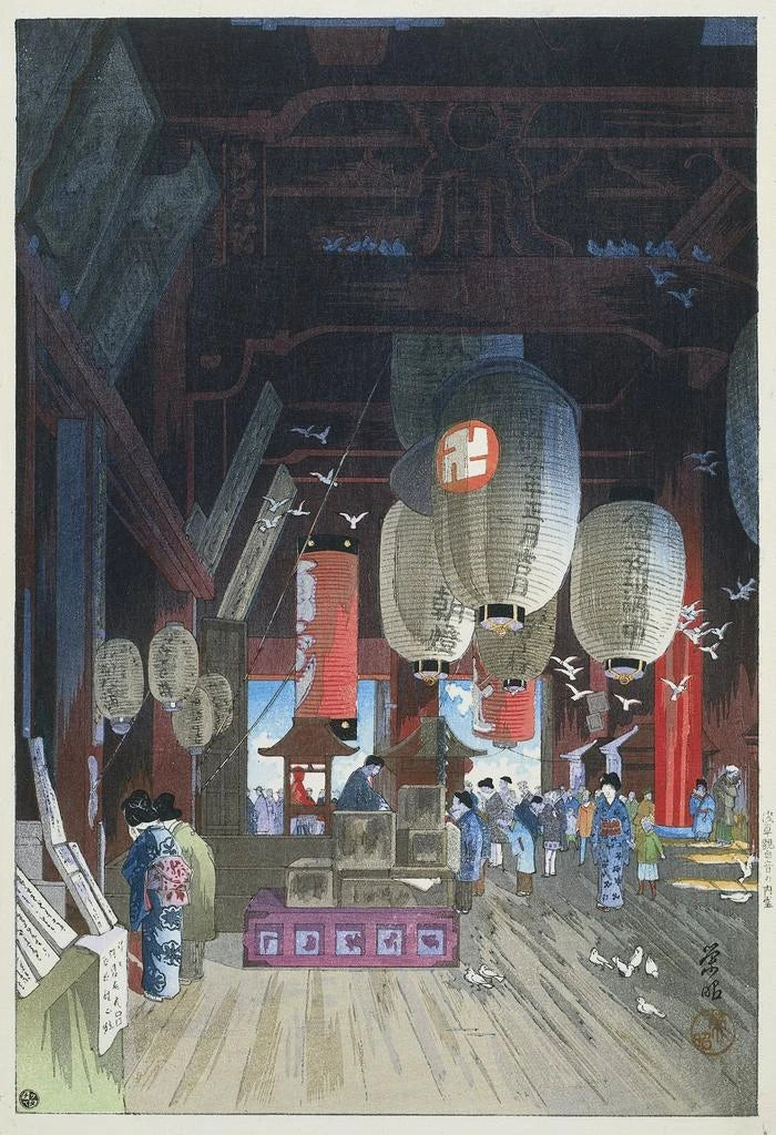 Art print | In Kannon Temple at Asakusa - Narazaki Eishō