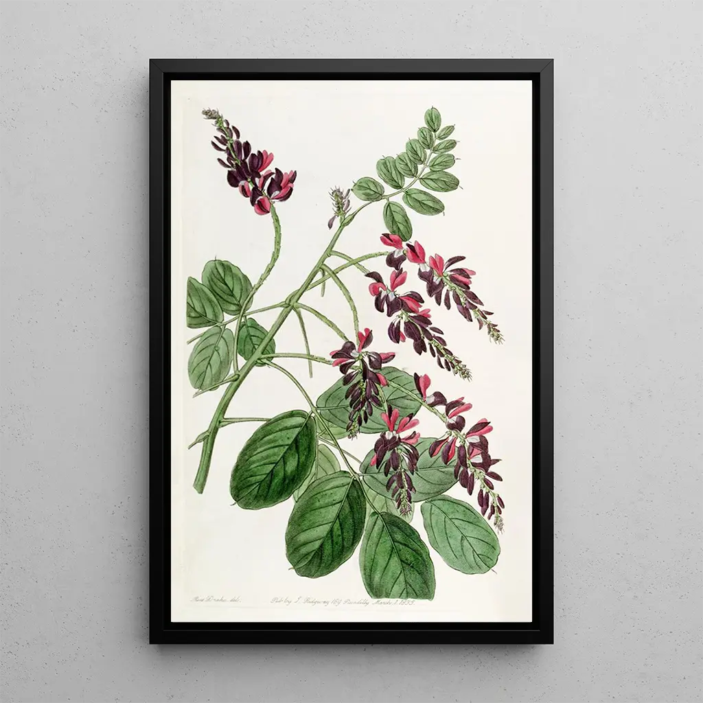 The Indigo tree with purple flowers, an iconic art print by Sydenham Edwards, transports us to a lush garden where nature expresses itself in all its splendor. The vibrant shades of purple, combined with touches of green, create an atmosphere that is both dynamic and soothing. The precision of the details, from delicate petals to lush leaves, demonstrates exceptional craftsmanship. This art print invites contemplation, evoking the fleeting beauty of flowers while adding a touch of freshness to your living space.