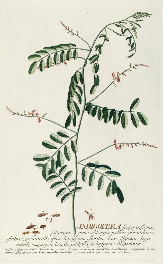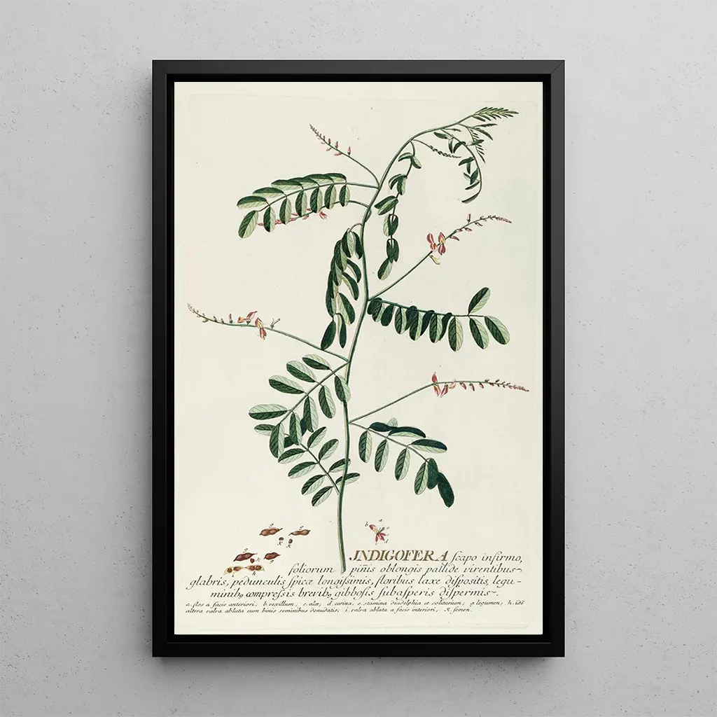 Indigo Tree III by Georg Dionysius Ehret is an art print that celebrates the splendor of plants through a meticulous and colorful representation. This art print features vibrant indigo hues, symbolizing the richness of this prized plant. The composition is carefully arranged, with each leaf and flower rendered with precision that reflects Ehret's talent. The atmosphere conveyed by this artwork is both serene and captivating, inviting the viewer to immerse themselves in the fascinating world of botany.