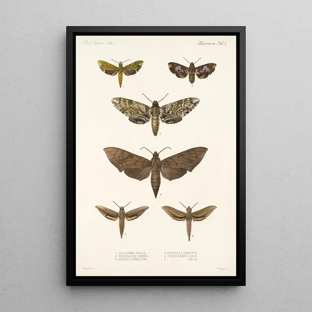 The reproduction of "Insecta Lepidoptera Heterocera Pl 002" is an ideal decorative piece to add a touch of elegance and curiosity to your interior. Whether in a living room, office, or bedroom, this artwork draws the eye and sparks conversations. Its printing quality guarantees fidelity to the details of the original work, while its aesthetic appeal makes it a perfect choice for lovers of nature and art. By incorporating this canvas into your decor, you give your space a unique atmosphere, blending culture, science, and natural beauty.