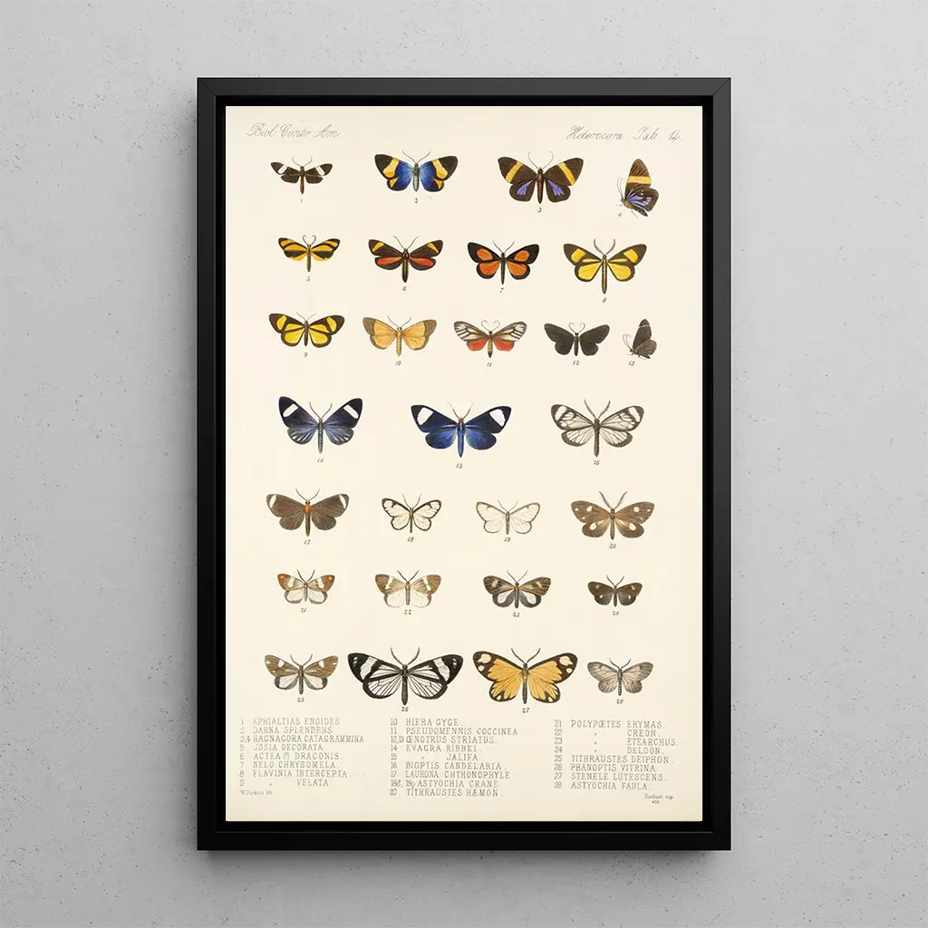 Frederick DuCane Godman, a 19th-century British naturalist and entomologist, skillfully combined science and art in his works. Influenced by the discoveries of his time, he dedicated his life to the study of insects, particularly butterflies. His work not only enriched scientific knowledge but also paved the way for a new form of naturalist art. "Insecta Lepidoptera Heterocera Pl 014" is part of a series that reflects his commitment to biodiversity preservation and his love for the beauty of insects. Godman remains an iconic figure, whose legacy endures in the worlds of art and science.