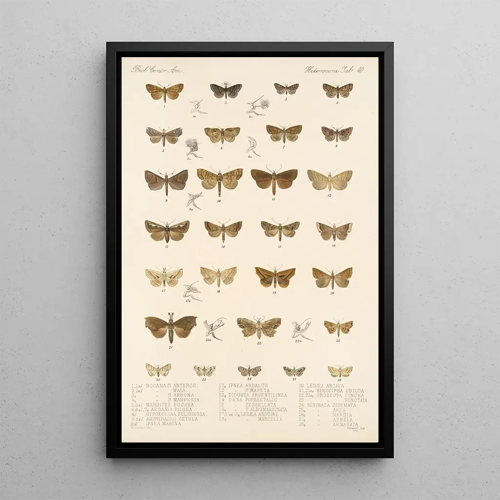 This art print of Insecta Lepidoptera Heterocera Pl 040 immerses us in a fascinating world where the beauty of butterflies is revealed with brilliance. The vivid colors and meticulous details of the wings create an atmosphere that is both delicate and dynamic. The technique of scientific illustration, blending precision and art, pays tribute to the diversity of species. Each element is carefully crafted, offering an invitation to observe and contemplate these ephemeral creatures. This artwork is a true ode to nature, capturing the very essence of entomology.