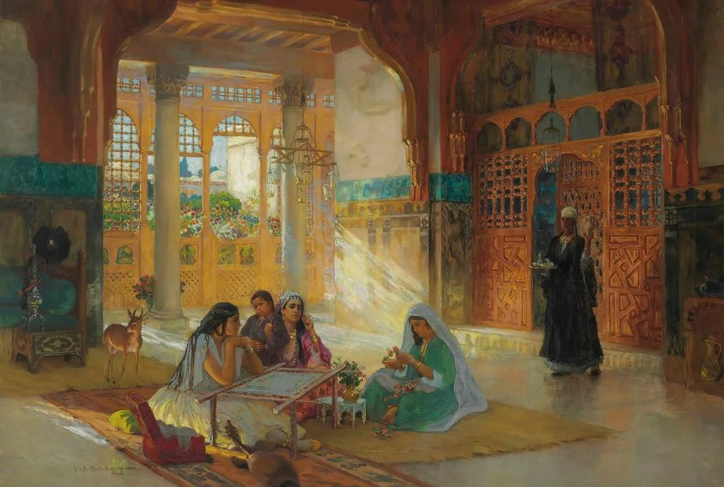 Frederick Arthur Bridgman, a 19th-century American painter, is famous for his depictions of Oriental scenes, influenced by his travels in North Africa and the Middle East. His style, marked by impressive realism, reflects his admiration for exotic cultures. Bridgman was able to capture the essence of these places through a vibrant palette and dynamic compositions. His work helped popularize Orientalism in Western art, making him an iconic figure of this artistic trend that fascinated many contemporaries.