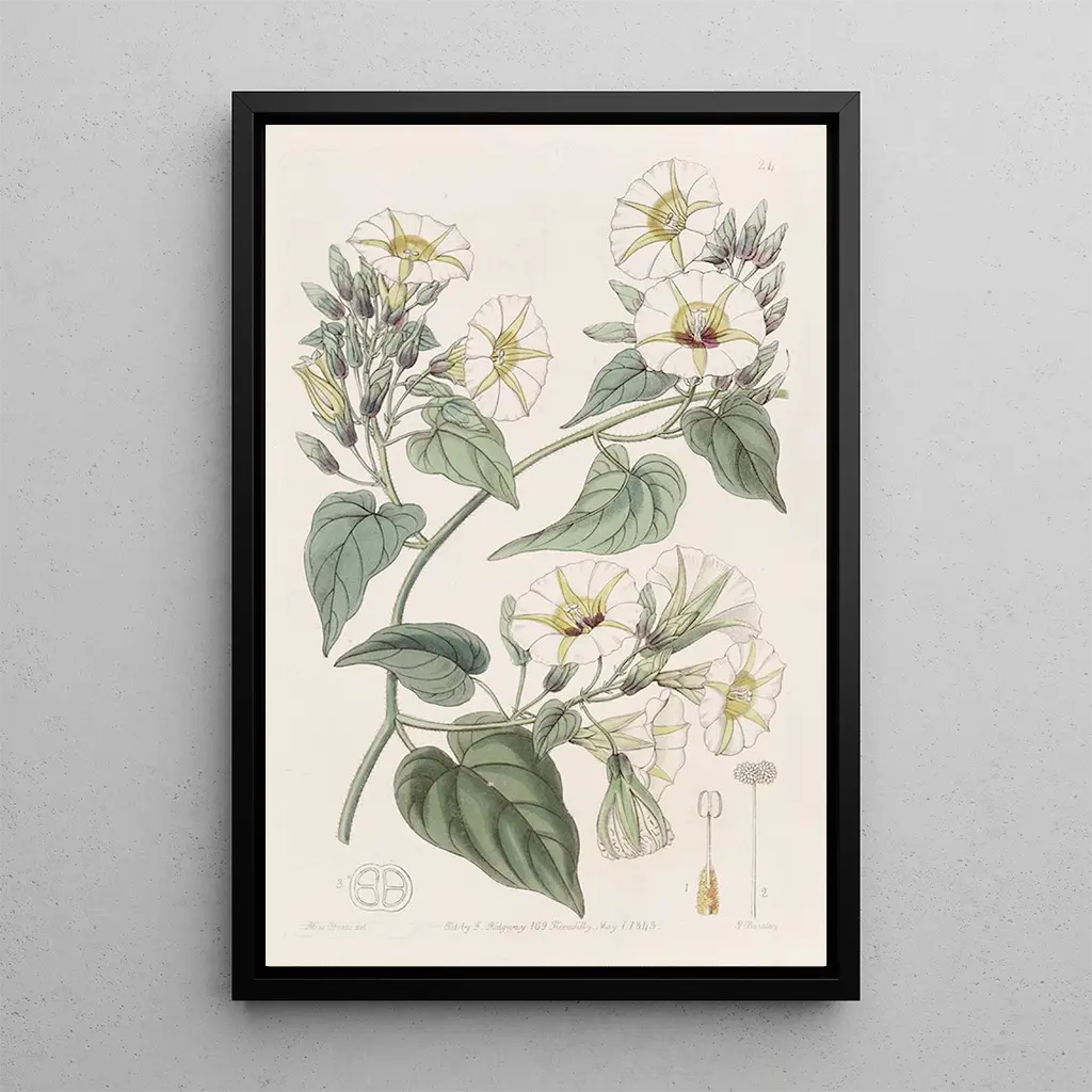 Sydenham Edwards, a botanical illustrator from the early 19th century, made his mark with works combining scientific rigor and artistic sensitivity. Raised in an environment where botany was flourishing, he collaborated with renowned botanists, which allowed him to develop a unique style. His illustrations, often published in reference books, contributed to the dissemination of botanical knowledge while celebrating the beauty of plants. White Climbing Ipomoea is a perfect example of his talent, blending precision and aesthetics.