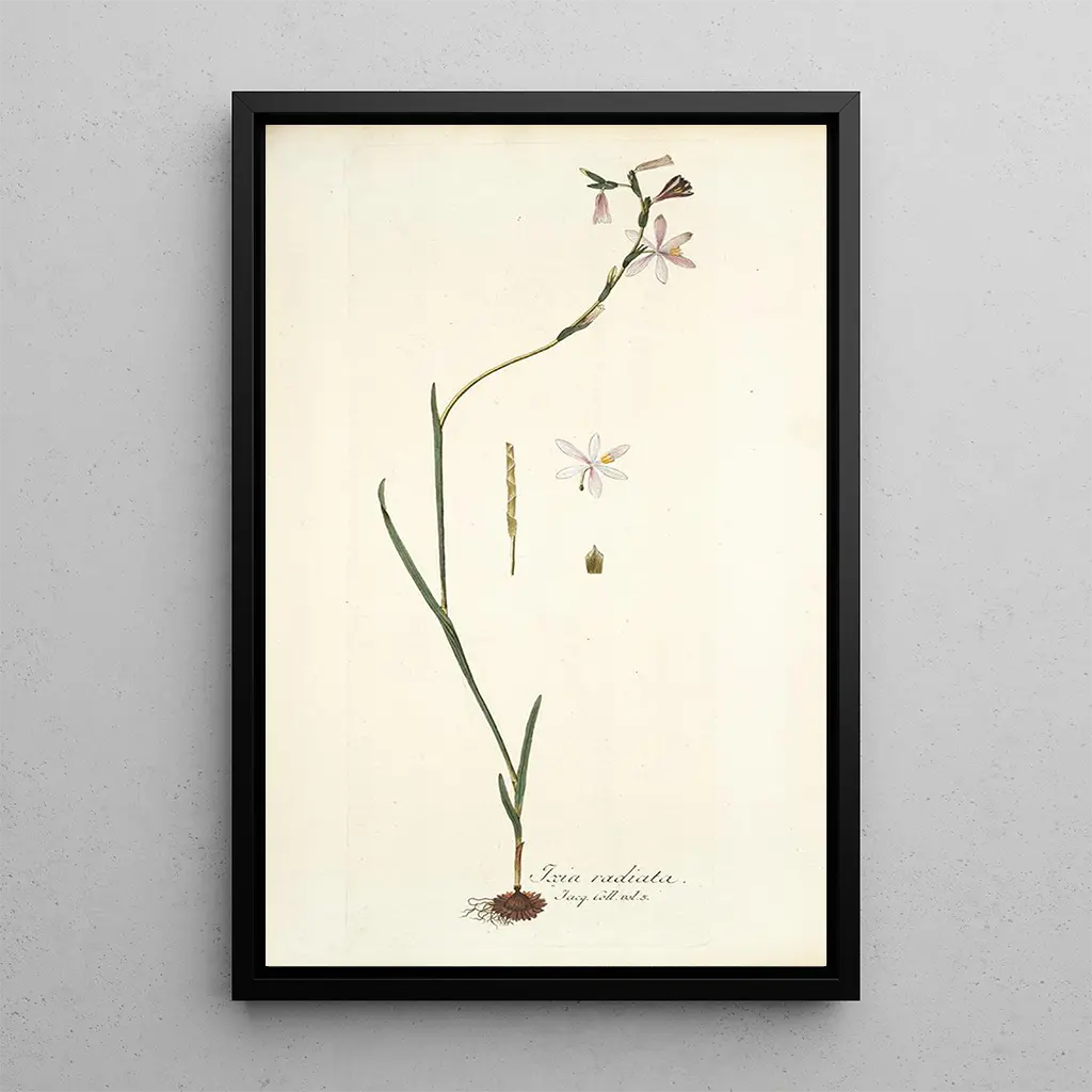 The reproduction of the art print Ixia radiata is a decorative piece that will enhance any interior. Whether in a living room, office, or bedroom, this canvas adds a touch of freshness and color, creating a welcoming and lively atmosphere. Its printing quality guarantees remarkable fidelity to the details of the original artwork, while offering undeniable aesthetic appeal. By choosing this art print, you opt for a decoration that combines elegance and nature, while enriching your living space with an artistic and refined note.