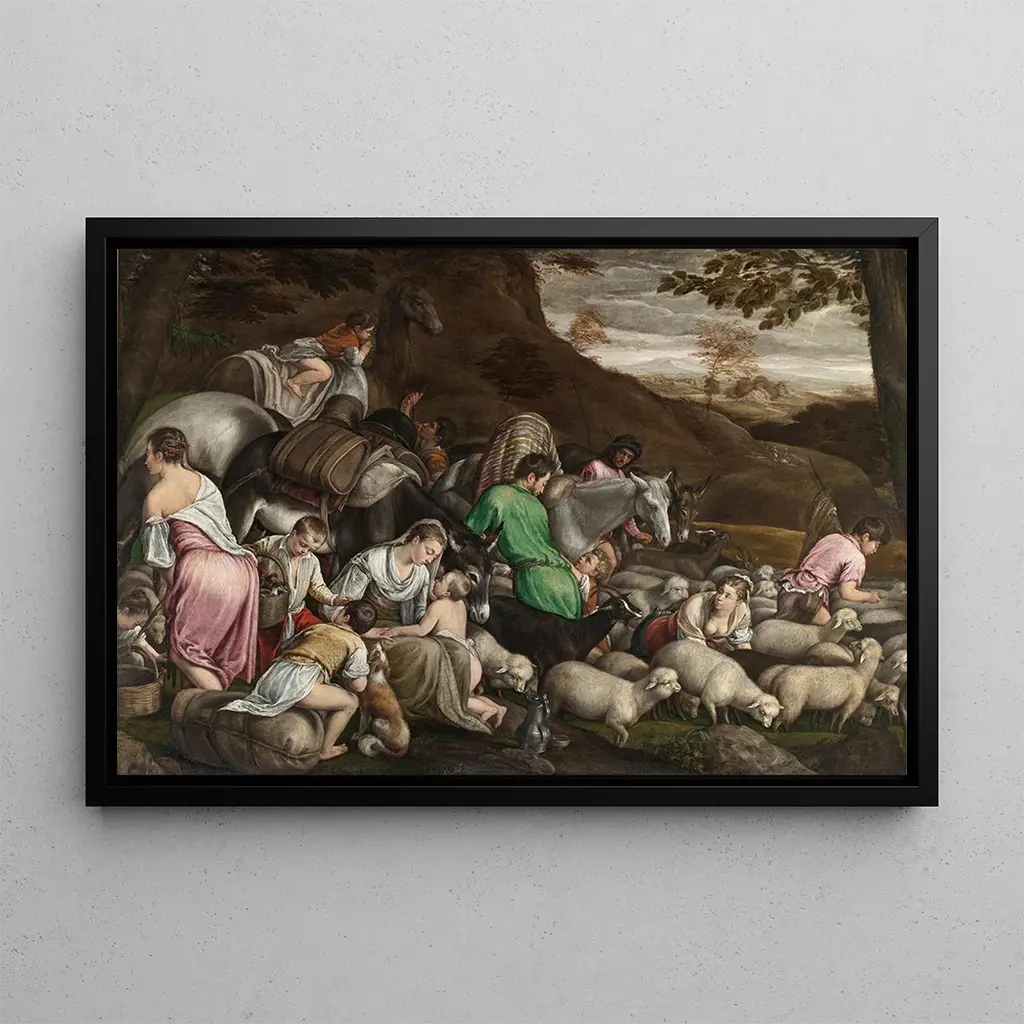 Jacob's Journey: A Rich Biblical Interpretation In "Jacob's Journey," Jacopo Bassano transports us to a biblical scene filled with mystery and spirituality. The dynamic composition and vibrant colors evoke a moment of transition, where Jacob, on his way to a new destiny, is surrounded by lush nature. The characters are depicted with great expressiveness, capturing the intensity of human emotions. Bassano's technique, which skillfully blends chiaroscuro and meticulous details, creates a dramatic and captivating atmosphere. This art print invites reflection on the inner journey and life's trials. Jacopo Bassano: Master of Venetian Painting Jacopo Bassano, a 16th-century Italian painter, is renowned for his unique style that combines Venetian influences and narrative elements. His career is marked by an exploration of religious and mythological themes, often enriched with realistic details. Bassano established himself in the Renaissance art scene, and his work "Jacob's Journey" is emblematic of his talent for capturing moments of tension and beauty. His innovative approach and mastery of colors make him a key figure in art history, and this art print bears witness to his artistic legacy. A decorative acquisition with multiple assets The reproduction of the art print "Jacob's Journey" is a decorative choice that will enhance your interior. Whether in a living room, dining room, or office, this canvas adds a touch of elegance and depth. The quality of the print guarantees fidelity to the nuances and details of the original work, offering an immersive visual experience. By integrating this piece into your decor, you create an inspiring space where art and spirituality meet, while also inspiring admiration from your visitors.