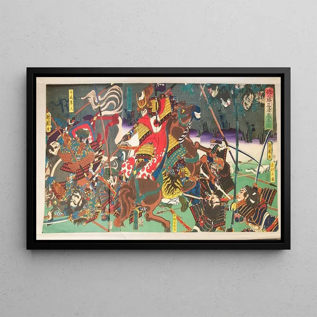The reproduction of this Japanese art print is an ideal decorative choice to enrich your interior. Whether in a living room, office, or bedroom, this artwork adds a touch of elegance and serenity. Its printing quality guarantees remarkable fidelity to the original details, allowing you to feel the magic of Kunichika’s work. The aesthetic appeal of this canvas lies in its ability to harmoniously integrate into various decorating styles, whether traditional or contemporary. Treat yourself to a unique piece that will captivate attention and spark conversations.