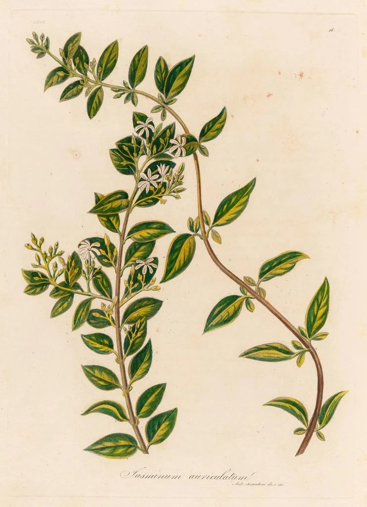 Gaetano Savi, an emblematic figure of the 18th century, marked the history of botanical art with his precise and poetic illustrations. Influenced by the scientific advances of his time, he knew how to marry art and botany, providing faithful representations of plants. His work "Jasminum auriculatum" testifies to his commitment to capturing the beauty of nature while respecting botanical details. Savi played a crucial role in popularizing botany through art, and his creations continue to inspire flower and art enthusiasts.