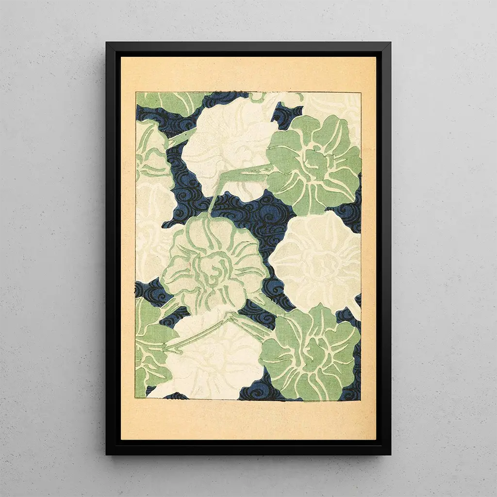 The art print of Bijutsukai Pl93 by Furuya Korin is a piece that invites contemplation. The vibrant colors and delicate motifs blend to create a soothing atmosphere. The silk painting technique, typical of Japanese art, gives this canvas an almost ethereal lightness. Every detail is carefully executed, from the flowers to the birds, evoking lush nature. The work seems to capture a suspended moment in time, where the beauty of the natural world is highlighted, offering an enriching visual experience.