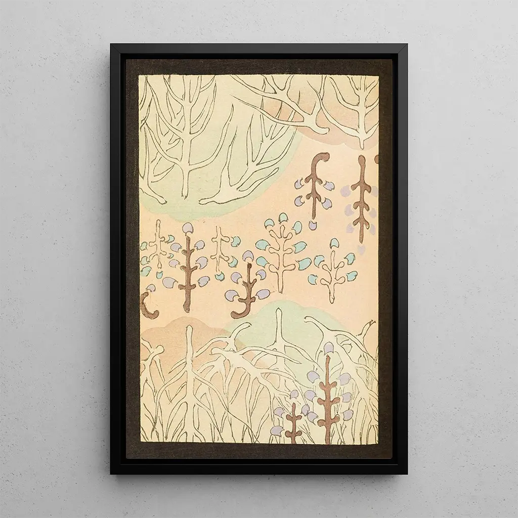 The art print of Bijutsukai Pl104 presents itself as an ode to natural beauty, where each element is carefully arranged to create visual harmony. The soft hues and delicate patterns evoke a serene atmosphere, conducive to meditation. The technique used by the artist, inspired by Japanese traditions, is characterized by meticulous details and a balanced composition. This canvas invites contemplative exploration, where one can lose themselves in the nuances and intertwined forms.